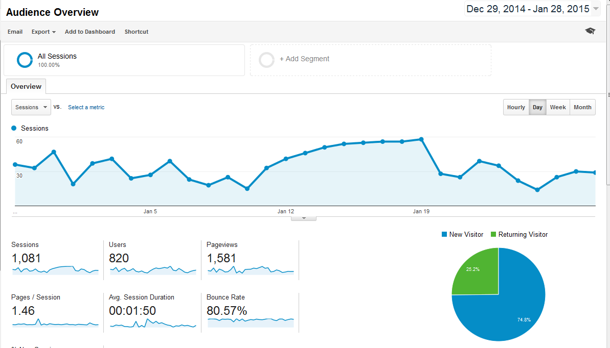The peak between Jan 10 and Jan 19 was caused by an interview-based blog post we published on Jan 10. The added social shares from the interviewees caused a boost in traffic, confirming the effectiveness of collaborative posts in helping traffic and backlinks grow.